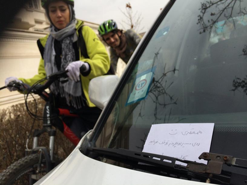 با پلیس هایی که سر راه می دیدیم صحبت کردیم که ماشین های روی خط دوچرخه رو جریمه کنن و راستش هر دو پلیسی که در دو جای مختلف دیدیم گفتن این کار رو می کنن… چه عالی یعنی…